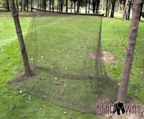 Posiada składany stelaż z lekkiego tworzywa utrzymujący moskitierę w kształt namiotu ("sztywna rama" w górnej części moskitiery, dzięki czemu siatka nie opada np. na twarz).