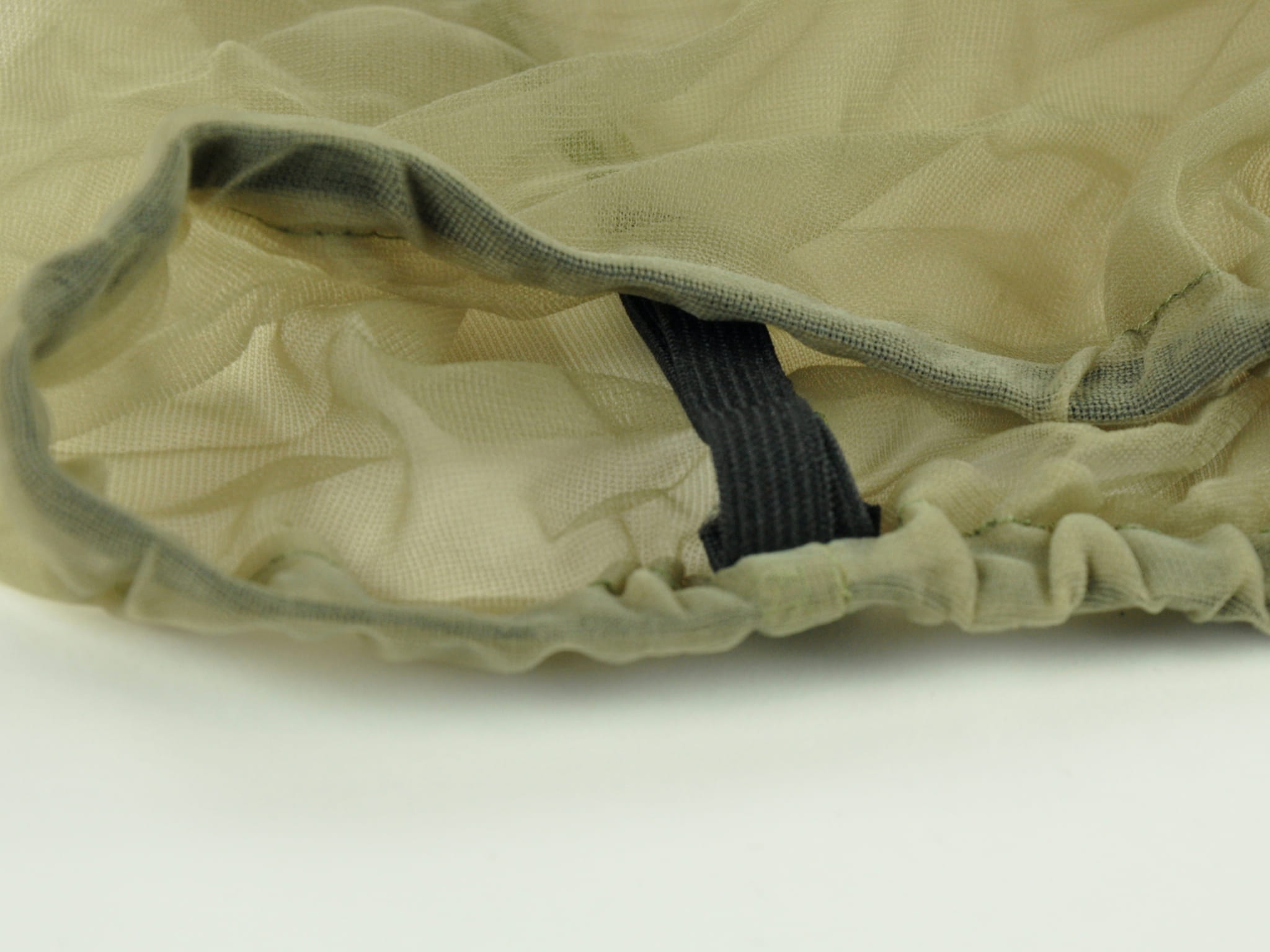 Wyposażona w elastyczną gumkę w dolnej krawędzi utrzymującą stabilnie moskitierę na miejscu. Bardzo duża gęstość oczek pomaga w ochronie przed uciążliwymi insektami a kolor pozwala na użycie zarówno cywilne jak i w połączeniu z kamuflażem. W komplecie woreczek do przenoszenia.