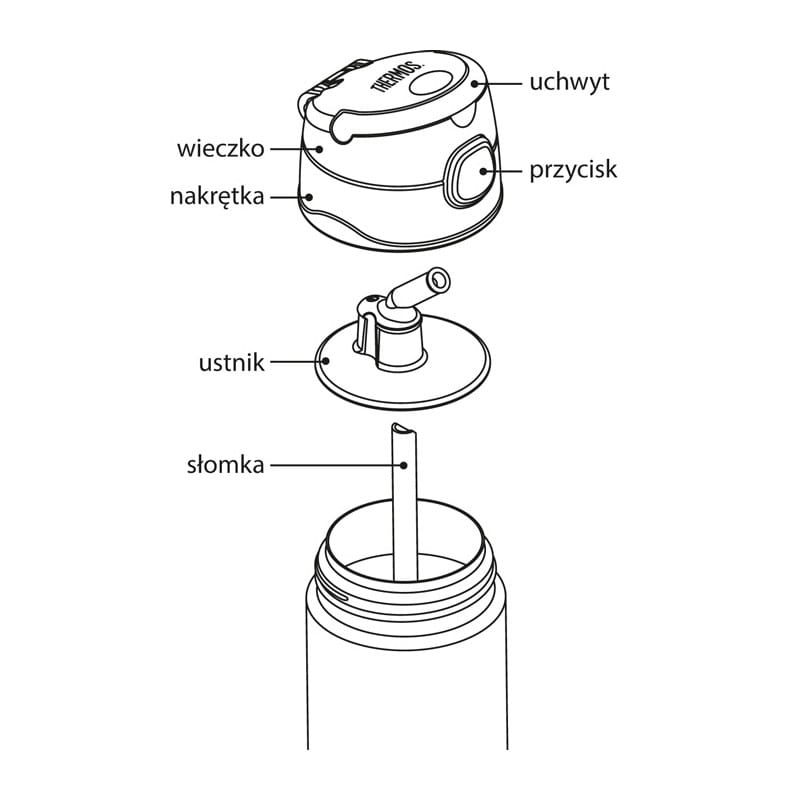 Wygodny ustnik ze słomką – dziecko może pić prosto z termosu, bez konieczności przechylania.