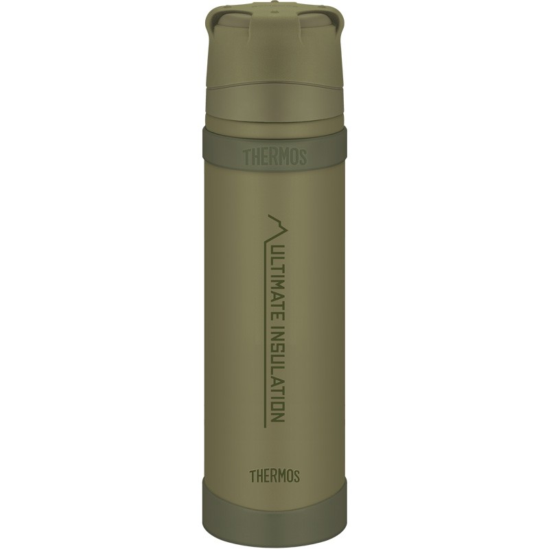 Bardzo lekki nierdzewny termos izolowany próżniowo z podwójną nakrętką, o objętości 900 ml do warunków ekstremalnych – w kolorze khaki.