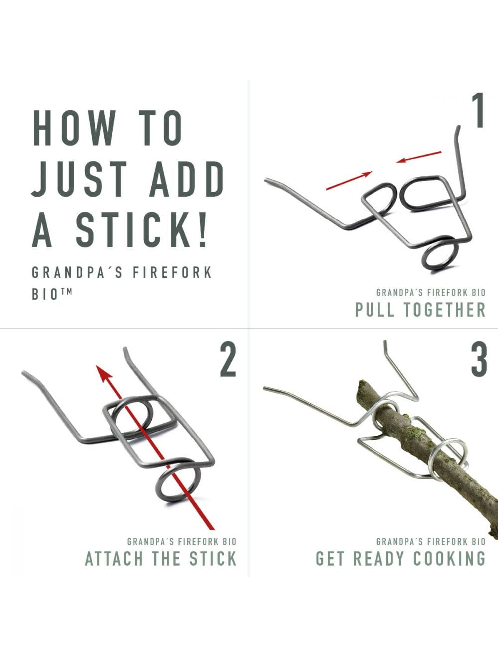Stalowy szpikulec do pieczenia Grandpa's FireFork BIO umożliwia wygodne nakłucie i pieczenie nad ogniem ulubionych smakołyków. Specjalne zakrzywienie szpikulca chroni przed upuszczeniem do ognia np. kiełbaski.